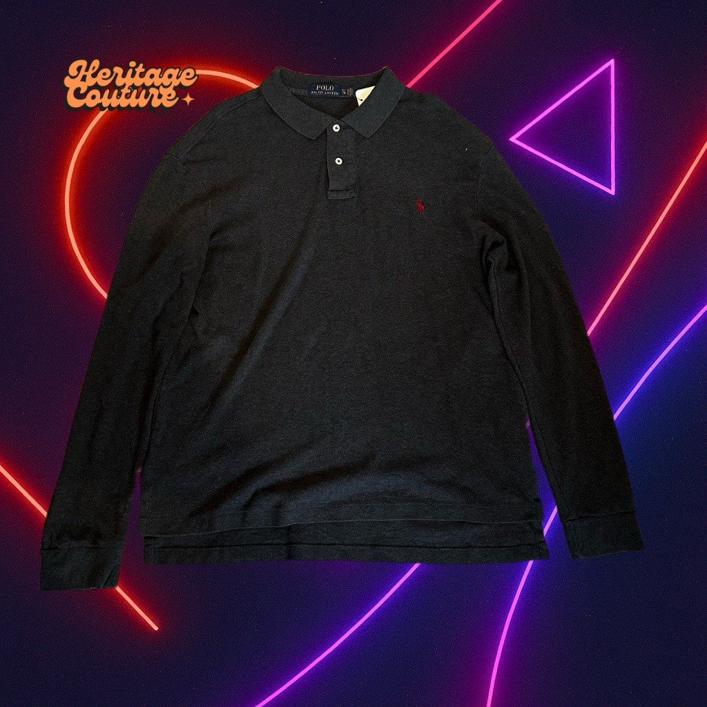 Schwarzes Langarm-Poloshirt von Polo Ralph Lauren mit klassischem roten Reiter-Logo. Größe XL, sitzt locker und klassisch. Hochwertiger Baumwollstoff – perfekt für den Übergang oder zum Layern unter einer Jacke. Ein echtes Basic für jeden Kleiderschrank! Zustand: sehr gut getragen – keine Löcher, keine Flecken. Leichte Tragespuren wie erwartet bei Vintage-Ware. Wenn du eine Rechnung brauchst, bestell gern über unseren Onlineshop: HeritageCouture.de Zahlung per PayPal mit Käuferschutz oder Klarna 30 Tage ist natürlich möglich.